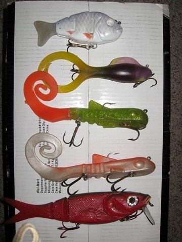 Here are some baits for trade. I'm looking for 12" weighted suicks, creepers, ry-lures, and Dr. Deths. If you have some of the baits listed and prefer cash or something else, let me know. I'm open to other baits too, just let me know what you have.