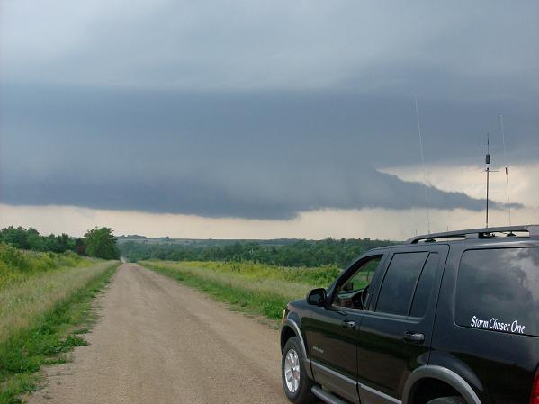 Posts: 1316 Location: Lebanon,Mo | Those are some nice pictures,but nothing to worry about.Your second picture is a small shelf cloud that might produce some wind/small hail,but thats it.Below is our storm chasing team sitting under a Supercell in Kansas and watching the wallcloud with a tail cloud to the right that produced a tornado later on with some softball size hail.You dont want this over your lake while on the water. Attachments ---------------- wallcloud.JPG (29KB - 233 downloads) | ||