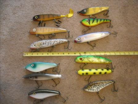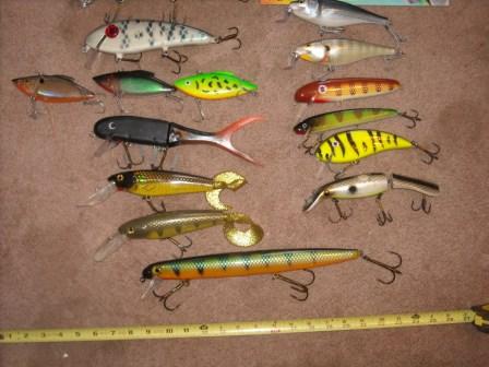 Posts: 431 | Here are a bunch of jerks and crankbaits. All prices include shipping in the US. I will reduce the prices some for multiple baits. PM with questions or to claim baits. Pic 1: Soft tail phantom: pending Walleye phantom: sold Crappie phantom: $12 Wood magic maker: $12 Turmoil: pending Wood magic maker: $12 H2O Xglide: $1O Slidn Shad: $12 Hellhound: sold TR Twitcher: $12 Unknown: $6 Wood Magic Maker: $12 Pic 2: Nate Bait: pending Old 8" tuff shad: sold 6" Tuff shad: sold 1O" Slammer: $22 Squirko: $15 Squirko: pending Big SS Shad: pending Leo: $1O Pre ROI DR: pending Squirko: pending Pic 3: No Box Bullhead: $12 Hawgteaser: $12 Hawgteaser: $12 Bobbie Bait: pending 1O" Suick: $12 9" Suick: $12 9" Suick: $12 9" Suick: $12 7: Suick: $12 All suicks are unweighted 3 old bobbie baits: $12 each-2 perch pending Each has been weighted Pic 4: 1O" Jake: pending 1O" Jake: pending both jakes have had their lips shaved Muskellunch: pending 8" Jake: pending Crane: $1O DD: sold Hoosier Handmade Crank: pending 6" Slammer: $8 8" Slammer: $1O 8" Slammer: $1O 8" Slammer: sold Salmo: $12 Shallowraider: $8 SSR: $5 SSR: $5 Pic 5: 3 rat l traps-$6 shipped for all 3 Shallow invader: pending Squirrelly Ernie: $6 Squirrelly Ernie: $6 Big Game: pending 6" Grandma: $5 SS Shad: $18 Believer: $5-has a cannon ball weight inside Bigfoot shallowraider: $1O Pic 6: Mag Super D: sold Mag Super D: Tail has been melted back together: sold Mag Super D: Has been melted back together at the back of the harness: $6 Small Suzy Sucker: $6 Swim N Spins: $4 each Lil Hustler: $4 Spinnerbait: $4 Pic 7: Fish Stick HD: $2O Edited by momuskies 8/11/2009 4:51 PM Attachments ---------------- baits.8.9 007.jpg (58KB - 71 downloads) baits.8.9 008.jpg (55KB - 96 downloads) baits.8.9 009.jpg (56KB - 79 downloads) baits.8.9 010.jpg (59KB - 78 downloads) baits.8.9 011.jpg (57KB - 89 downloads) baits.8.9 015.jpg (57KB - 85 downloads) baits.8.9 016.jpg (59KB - 68 downloads) | ||