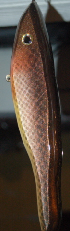 Posts: 4266 | The Redhead Jailbird was made for a friend out of Osage Orange that turned that tint of yellow when I sealed it. I've got a bunch of lures made out of different woods that aren't finished yet, so I'll be busy this fall. First of all I have to finish and paint a bunch of Perkas that I have left. I'm going to save one of each blank until I can duplicate them. Might have to take some up to Vermillion. Anyone going....drop me a line with your color requests. Beav | ||