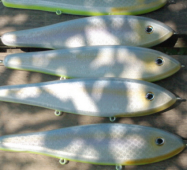 Posts: 4266 | Tigger, always good to hear from you. Jerome, I painted up 5-10" Whitefish/Cisco....whatever you call them......with a thin Chartreuse belly. Someone asked for one, and it looked so good that I did 5. I'm heading out to the garage to do 5 of those Copper Suckers. Something about that copper that fish like. Anyway, after that I'll have like 3 blanks left from these 10"ers that Lee made for me a few years ago. I don't know what's up with him? I was hearing from him on a regular basis and then I heard that he had a relapse. I hope he's alright but I get no response to my calls or e-mails. I'll have to get some hard maple and try to do them myself. My daughter is gone today so I'll paint for about 2 hours. That's my limit. When she's home, I spend all my time with her. I like to paint lures, but I love my kid. Pictures of the Whitefishco later. God Bless, Beav | ||