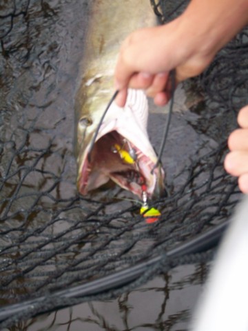 my 5 year old son caught his first musky last week on a small kickin minnow that the musky had it deep in its mouth good thing i had my spreaders must have tool