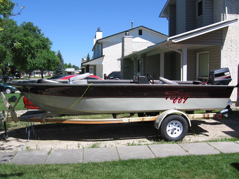 Posts: 1 | Not sure what year/model my Tuffy is (I think its a 1988 Sportman 160?) but it sounds similar to what your looking at, I have attached a picture of the day I got it last year. I love the boat (who doesn't love their first boat) and am not sorry I bought it. The boat has been modified slightly, it now has a 90HP Merc and 6" jackplate on the back plus lms 527 gps and stereo and dual battery's and a bow mount Minn Kota. The little 50 Yamaha was a great reliable motor but was a little underpowered for 5 people (I have three kids). With the engine swap I went from 32 MPH top speed loaded with 5 people + gear to 44.6 mph@5450rpm loaded, I am very satisfied with its performance after trying so many different props to get it tuned. I settled on a 22" Laser II but a 21" would have been better for pulling skiers etc. The sponsoned hull is great for stability but kinda harsh in the big waves, I have had it out on Lake Manitoba during a wind storm in some 3 ft waves...kinda weird at first to go on top of the waves instead of through them but once I got used to it I was pinning it just to see how much she could take. My body gave up before the boat did...I didn't even get very wet. Best part is people around here have never seen a Tuffy in person so people are always doing a double take at the ramp even though its an old boat, it kinda nice to have the guys with the brand new boats admiring my old girl to see how they are built...it has everything I need. Feel free to PM me if this boat is similar to what your looking at and you have any questions. Attachments ---------------- IMG_0010resize.jpg (114KB - 234 downloads) | ||