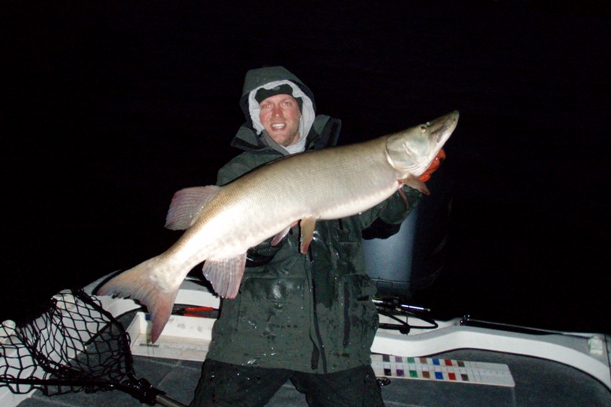 | Jerome, We also fished the last two days of the season on the big V! We got one 45 trolling on monday and lost one about 48. The snow was crazy. We had about 3 inches in the boat! Sunday was the day to be fishing! We got a 46 right away then a monster 52. Next spot produced two 44's, then back to the first spot at sunset for a fat 48! What an amazing fishery and a great way to close the 09 season! Pics to follow! | ||||||