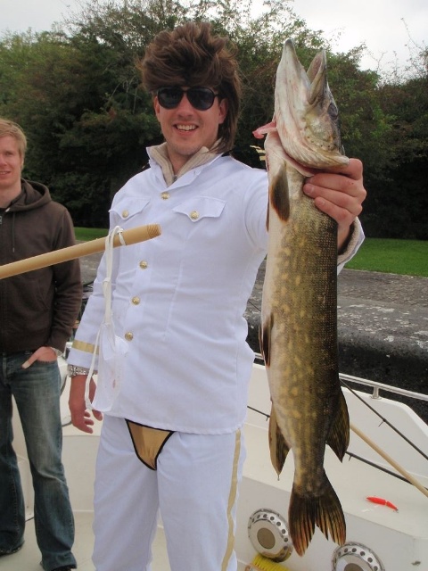 I saw this video on Mr. Mania's site this morning, so I thought you would like the YouTube direct link since the opening lines of the song are "Muskies come First"! I also received an email this week from a friend in Chicago of his German friends that made a trip to Ireland. This attached photo was the most disturbing photo of the bunch holding a foreign looking gills ripped out northern by a really foreign "ABBAish" looking guy! The best two fish in my boat this year were a Northern, and the other type with stripes. I REALLY do like the Pike Fish!