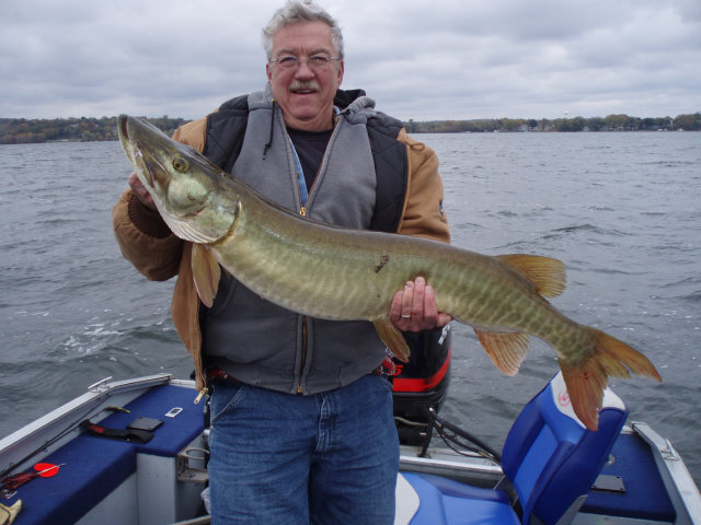 Posts: 32955 Location: Rhinelander, Wisconsin | One form the OutdoorsFIRST Inbox: 44.5 inch Muskie caught on Pewaukee Lake 10-17-09 Temp 40,wind 6mph water temp 40,at around 2 pm in 6 feet of water on a 9 inch sucker. Catch and release. Attachments ---------------- Dans 44 inch Muskie.JPG (71KB - 166 downloads) | ||