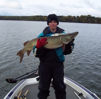 Posts: 667 Location: Roscoe IL | Went Sunday with the whole family, spent 4 hours on the water before the wind kicked up & they wanted off the boat. Lost 2 & got a 37. The boy's named the Quick strike rig a 1/2 Nelson since you only put the hooks on the left side of the Sucker & BNelson makes them. First one on that rig for us. Attachments ---------------- KIDS MUSKIE.jpg (38KB - 148 downloads) | ||
