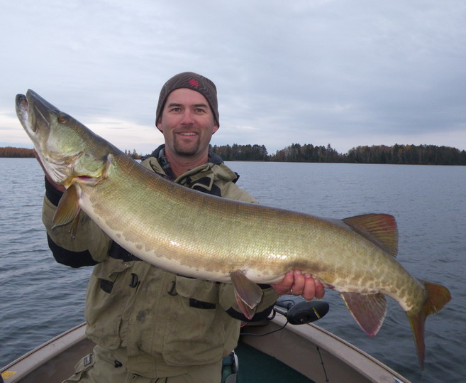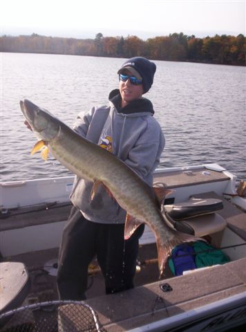My dad and I fished a local tournament Saturday and Sunday. Saturday morning I broke my 40 hour slump with a 30.5 inch ski. We then went 4 hours without seeing a fish. Then between 1:30 and 3:30 (moonrise was at 1:55) I caught a 43.5 on the figure 8, we each lost a low 40 inch muskie and we raised 4 other fish. Sunday it rained all day and with ten minnutes to go in the tourney I stuck a 38.5 to seal 1st place. All of the action we had were on double 10's. Water temps ranged from 42 to 47.