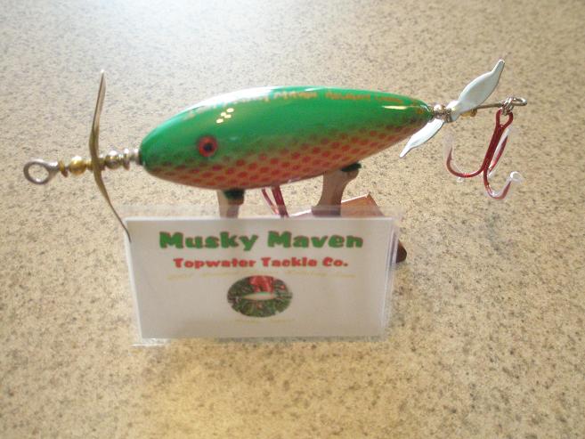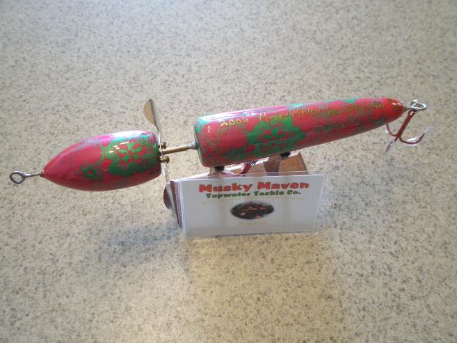 I have a few of the collector lures left from the past couple years. I've been doing these each season since 2006. I only do 25 per year, and each is signed "Musky Maven xxxx Holiday Lure #/25" (xxxx being the year and # being the particular lure #). 2006 was a Globe, 2007 a Topper and 2008 a Crazy Crawler. I have 3 full sets left and then a few more matching #'d 2007 and 2008 lures. 2009 lures will be done in the next couple of weeks and will be a "classic" creeper painted in a sort of 'Holi-Frog" color (red head, iridescent green body, gold spots with red centers).