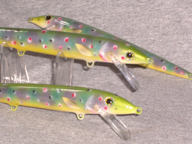 | Jump to page : 1 Now viewing page 1 [30 messages per page] More Muskie Fishing -> Basement Baits and Custom Lure Painting -> Repaints: Rapala, Gancraft, Sebile Swimmers |