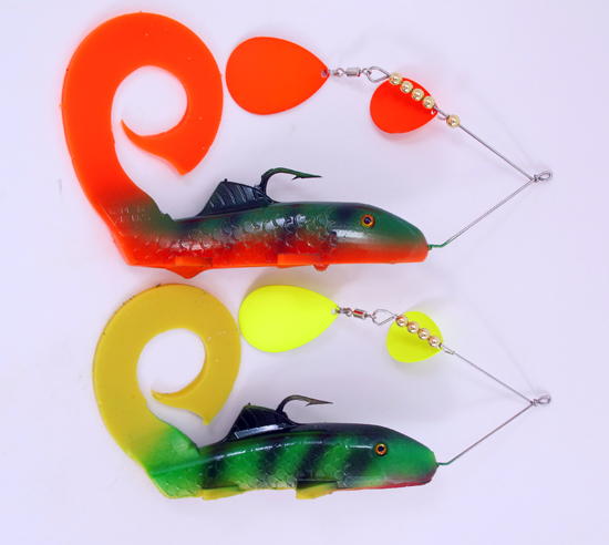 RubberHairy Tackle will be partnering up with Muskytales at the chicago show,but will be in milwaukee,ohio,rockford,minn..new london.We will have the Twisted tullibee which is new for 2010 it has a 5" body and 8" tails.Shane masons guide service did well with the twisted tullibee in 2009 and buckhorn guide service also.Here is a few colors and pictures of it.Also are a few show color 7" swim n spin lures.