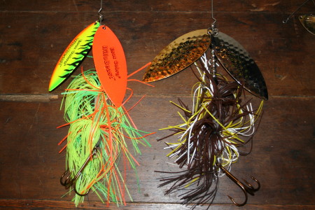 -rad dop #10 spinnerbaits, fish like them but I had 2 break, one on a fish that probably killed it, and another broke in the first couple hours of trolling. Not too impressed.