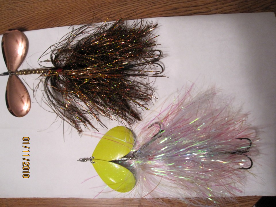 Location: SE, WI. | Have new custom double 10's. 1 is new. other is used slightly. Chart blades/pearl white tinsel...and copper on copper.