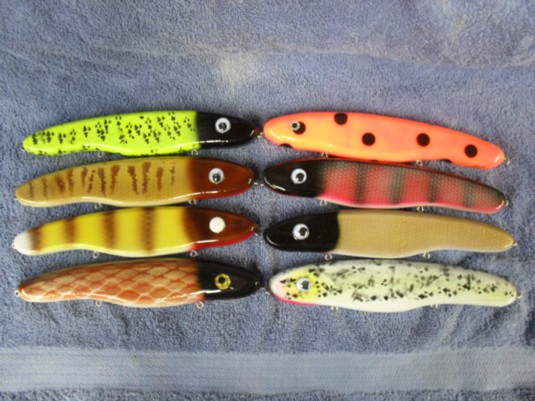 More Muskie Fishing -> Basement Baits and Custom Lure Painting -> More baits from the basement