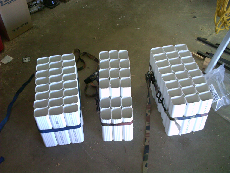 I think it looks great. One suggestion for you on the pvc down spouts to put a little finishing touch on it. That would be to use pvc primer and glue to hold them together instead of rachet straps. You may have aready done this and used the straps to hold it while the glue sets up but just a option. I have done it for pedastal base lure holders by taking 2" pve or ABS and glueing it together in a circlular pattern to fit around the post of the pedastal. Very inexpensive and with some spray paint can add alot of extra finish and use out of it. Good job on what you did. It is nice to have brother in-laws that help you out. But lets face it it is for their comfort also if they fish with you. Very nice job on this!