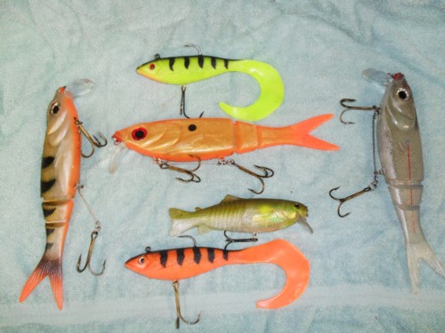super shad raps, orange and minnow kickin minnows, orange and chart. storm twisters, and all the spinnerbaits are stll for sale