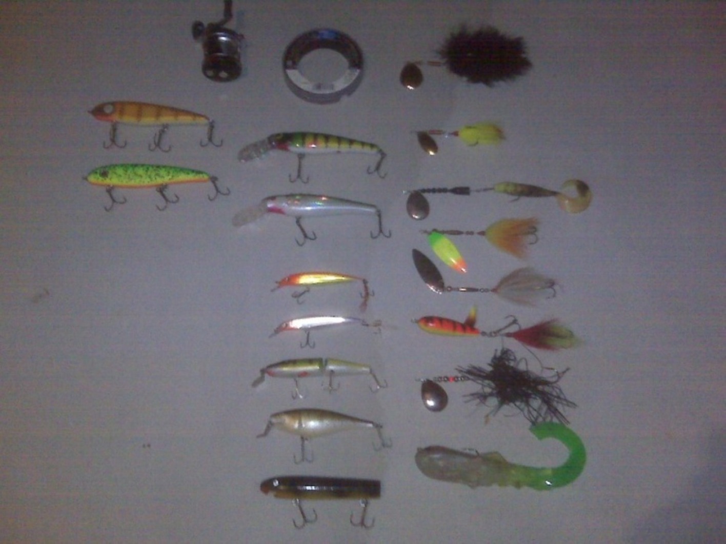 I won't use this for muskies, but it works well for stripers and some saltwater species. 30 yds spool of Berkley Vanish 60 lb. (missing 12") It is listed in upper middle of picture (disregard everything else in the picture).