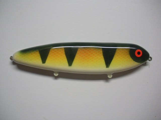 New, the perch colored glider is a topwater and it Walks the Dog very well. Since it is flat sided, it throws a good bit of water as it changes directions. I use the same pattern, flip it upside down and use a diferent wood to make a sinking glider that works very well also.