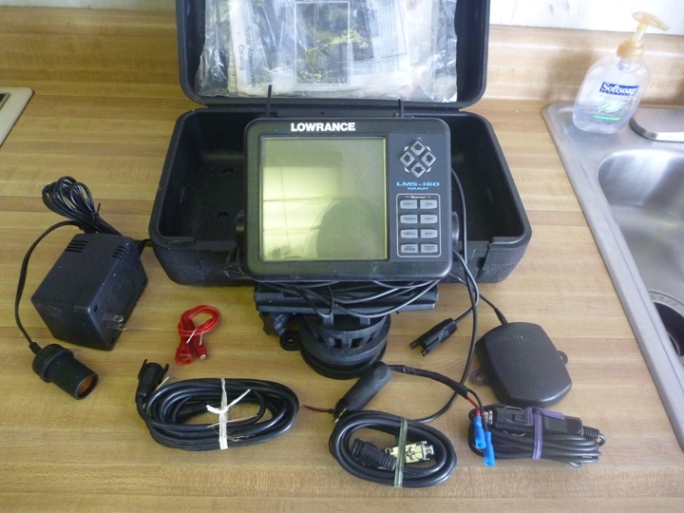 Lowrance LMS-160 gps/sonar unit and a brand new HS-WSBK skimmer transducer. It comes with a MapCreate Series 4 CD. $125 shipped.