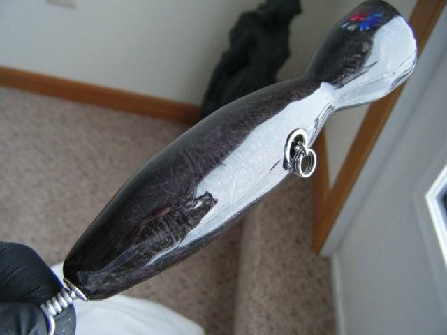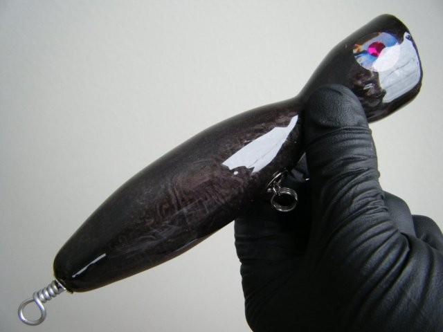| Jump to page : 1 Now viewing page 1 [30 messages per page] More Muskie Fishing -> Basement Baits and Custom Lure Painting -> Musky poppers finished-hardware/final epoxy coat |