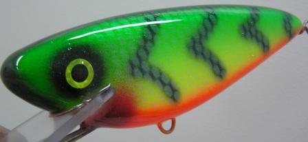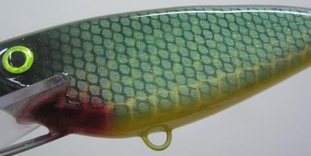 Posts: 1106 Location: Muskegon Michigan | Sorry for not having the pictures on this morning. It was late last night when I decided to post these. The baits are 7.5 long (body) nose to tail. 1 inch thick. Lip is 3/16th lexan. They can dive to 30 feet on wire or thin Braid. My website is way behind on lures, colors and prices. So much to do so little time. Kingfisher | ||