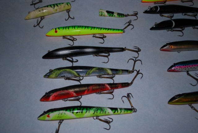 Posts: 2361 | ,,,I started looking at my own stuff. 6 tallywhackers, 6 hawg wobblers, several 9 inch suicks in most colors, a few of a certain crankbait, and none of these can be trolled, they are all cast, so why own more than one, and then this winter I busted my favorite burt, and the burt is a good cold water bait, but cold air is its nemesis. The one that busted had replaced the previous one that busted(a legend), and when you bust your favorite, you better be prepared, and have a replacement ready. I put a brand new(used) one into play, actually same color, though I don't particularly like that color, it seems they made a lot of those. Anyway, the action on the newbie actually shoved it to the head of its class of the backups, and of course, the backup backups. Attachments ---------------- the replacement.jpg (74KB - 168 downloads) and the backups.jpg (82KB - 167 downloads) and the backup backups.jpg (80KB - 161 downloads) | ||