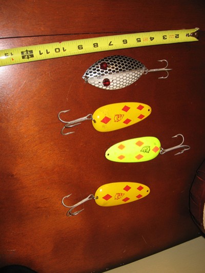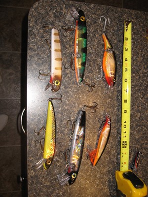 Posts: 49 | Prices do not include shipping Topwater Lot Top Raider Red - $9 - sold Top Raider Green - $9 - sold Jackpot - $ 5 Jitterbug $5 Globe Yellow $ 9 - sold Globe Green $9 - sold Believers Any lure is $6 each - sold two left Candy Any lure is $4 each Spoons Daredevils - Yellow (2) $5 each Ruby Eyed Wiggler $ 8 Daredevil - Green - $5 Crankbaits Any G ma - $10 - black and red left All other - $3 each sold Crankbaits 2 Short g ma - $5 each sold Shallow Raider - $7 each sold Rapalas fat & skinny - $5 each Bucktails Any bucktail - $5 each Bucktails 2 Any bucktail -$6 each Jerkbaits Vipers w/ weights - $15 each Black Smallie Red Shad Mr Automatic - $15 sold Phantoms - $10 each sold Perch Perch (white eye) H2O x glide - $10 each Perch WhiteFish Pig - $7 sold Edited by musky45 3/7/2010 10:03 PM Attachments ---------------- believers.JPG (70KB - 126 downloads) bucktails.JPG (65KB - 117 downloads) bucktails2.JPG (92KB - 115 downloads) candy.JPG (66KB - 112 downloads) crankbait2.JPG (64KB - 114 downloads) crankbaits.JPG (46KB - 106 downloads) jerkbaits.JPG (36KB - 112 downloads) topwater.JPG (70KB - 113 downloads) spoons.JPG (64KB - 103 downloads) | ||