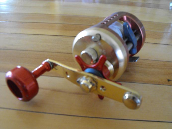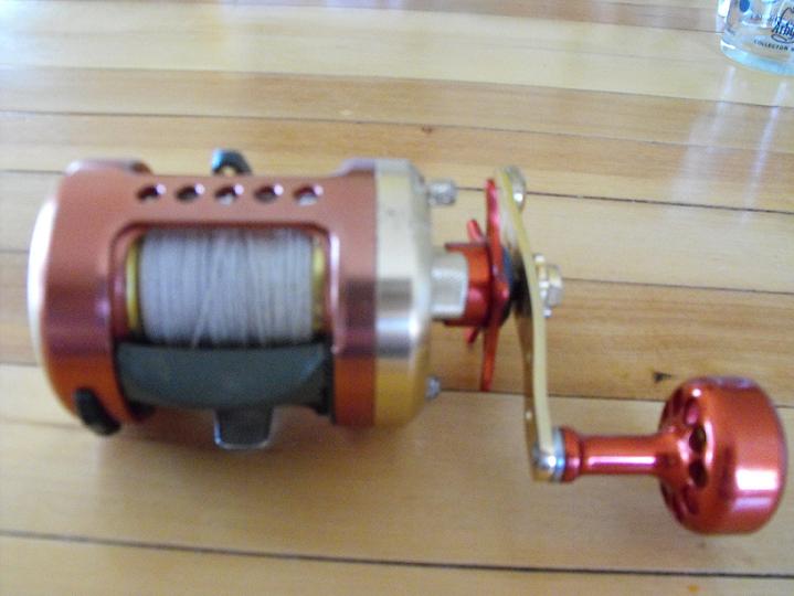 Okuma Red Isis Ri-400P. Aluminum power handle, used 2 years, fishes perfectly