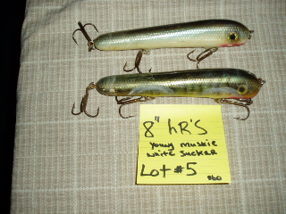 lot#5 $60 8" hughes rivers colors=young musky,white sucker (sold)