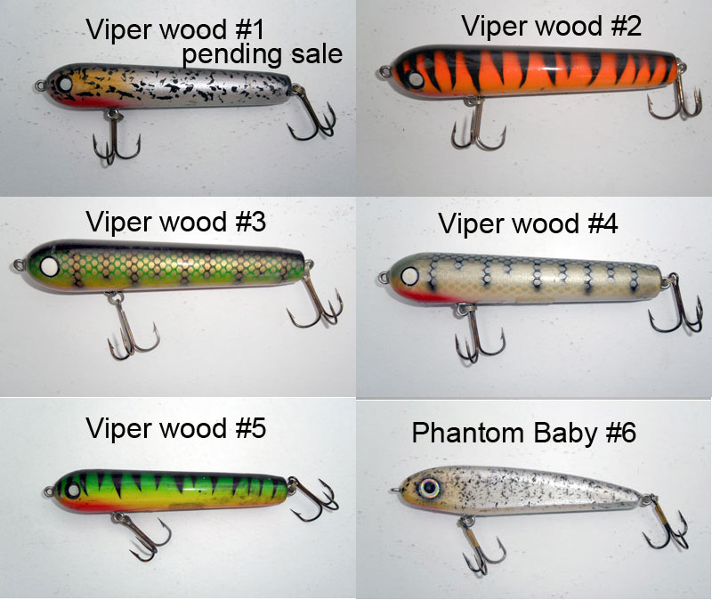 Muskie Fishing -> Buy , Sell, and Trade -> 4 wood Vipers and 1 baby wood phantom starting at $9