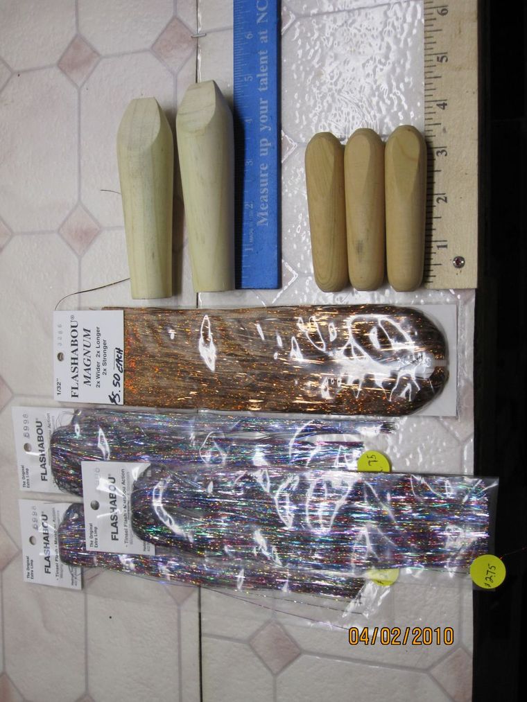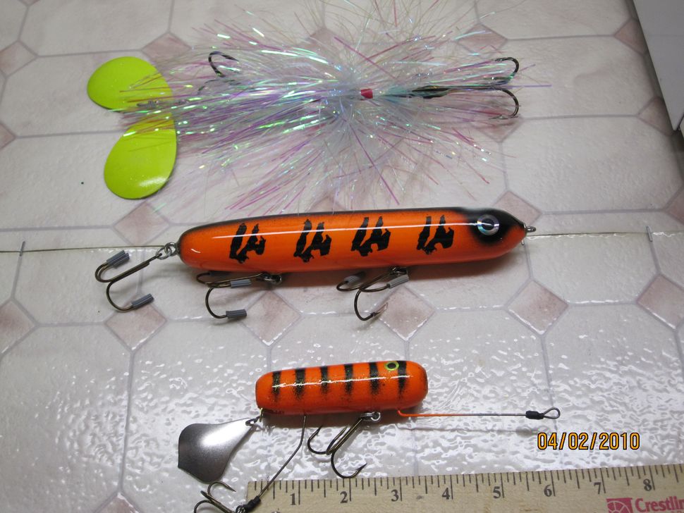 Posts: 2332 Location: SE, WI. | For Sale-DCG, NEW, Built like a tank...$14 shipped...PENDING! THANKS 13" Grandma, little use, $20 shipped....SOLD, thanks Joel WTD surface, NEW, $13 shipped... Pending Custom Bass size Flaptail, NEW, $15 shipped. Great for kids and light tackle. use with 20lb line, Flippin stick rod. PENDING! THANKS 3 new creature spins W/ leaders...$15 shipped ...Pending! Thanks Greg 3 white bucktail...$4 shipped MAG COPPER TINSEL...$5.50 shipped..pending Rainbow flashabou...$2.75 each shipped..all pending 3 Flaptail bodies...bass size...$3.00 shipped ALL SOLD.....PLEASE DELETE! Edited by jdsplasher 4/10/2010 5:59 PM Attachments ---------------- IMG_0153.jpg (112KB - 102 downloads) IMG_0152.jpg (120KB - 94 downloads) IMG_0151.jpg (122KB - 92 downloads) IMG_0154.jpg (147KB - 93 downloads) | ||