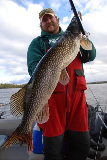 Jerry, was that your "chewed up" Cisco colored Krave that John was showing at his Musky Armor booth? Looked like it had taken quite a beating on the rocks (still in great shape just a little paint missing on the nose), and lots of teeth marks... that pike you have pictured is a beast!!