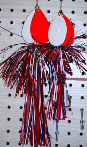 i got a box full of double-10 and double-9 Glittertails from Jim for delivery to the vets up at Operation Muskie this year. cool custom red/white/blue colors, thanks Jim!!!