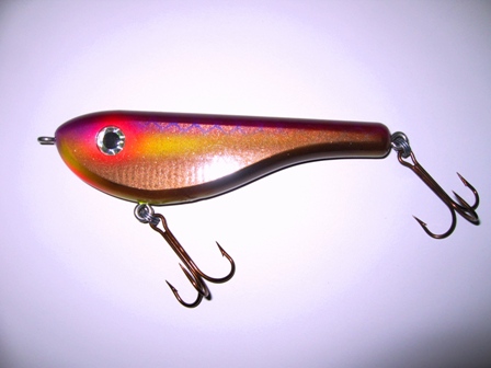 Location: SE Wisconsin | I had Doug paint these up for me a couple months ago. Purple, brown and chartreuse were amongst the hottest colors for a group of us last year! This lure sports wolverine split rings and mustad hooks.