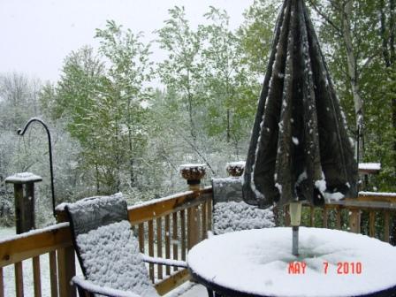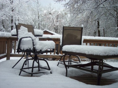 I ended up with 4" on my deck this AM. This pic was taken yesterday afternoon.
