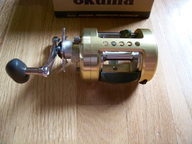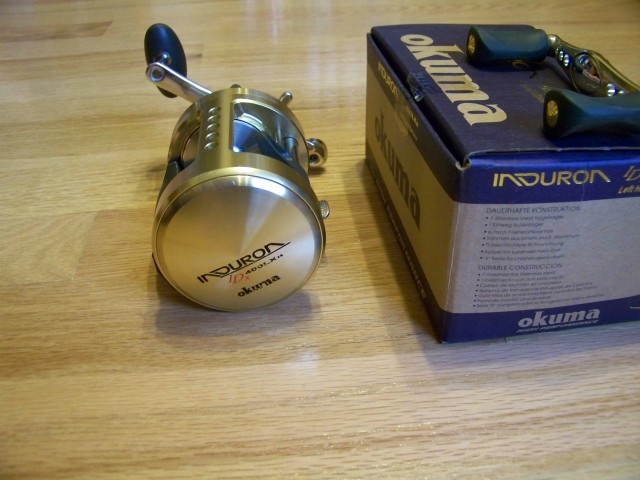 Okuma Induron IDX 400LXa reel comes with the standard handle and the power handle installed. Also, it was just serviced by Okuma over the winter.