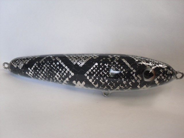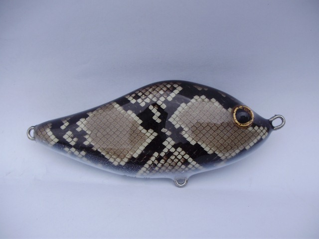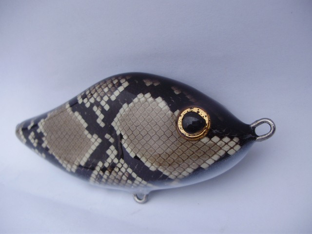 Posts: 909 Location: South-Central VA | I just finished these Salmos up for DickMac2000. One more day to cure and they ship out! I really enjoy doing these little guys and the taxidermy eyes give them a great look. This first little guy is from python skin and the second one is from a tan colored sea snake skin. The tan seas snakes are pretty rare but they look great on a lure. Attachments ---------------- P6060036 [640x480].JPG (50KB - 239 downloads) P6060037 [640x480].JPG (52KB - 222 downloads) P6060039 [640x480].JPG (82KB - 193 downloads) P6060040 [640x480].JPG (51KB - 193 downloads) P6060041 [640x480].JPG (51KB - 218 downloads) P6060043 [640x480].JPG (82KB - 204 downloads) | ||