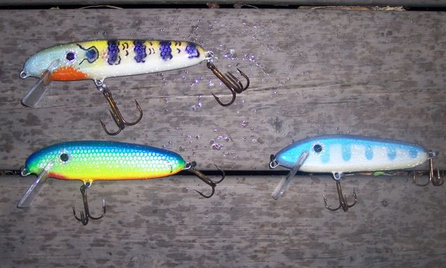 -The top two are hardly (Black/Gold one is sweet!), if at all, used. The black/white is basically brand new, trout one is a bit used, and bottom is in good shape.