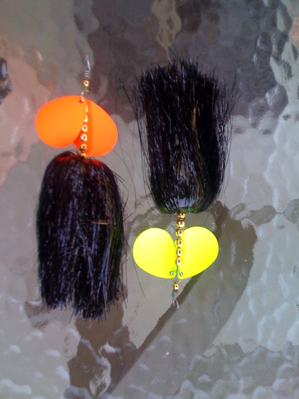 First time available inline and spinnerbaits. The baits are available at manufacturing cost. Inlines hand reversed tied with flashabou using double #6-#10 blades, single hooks, large spinnerbaits using reversed flashabou, tandem with #6 and #8 blades or #8 and #10 blades, 1 and 2 oz. and single hooks.