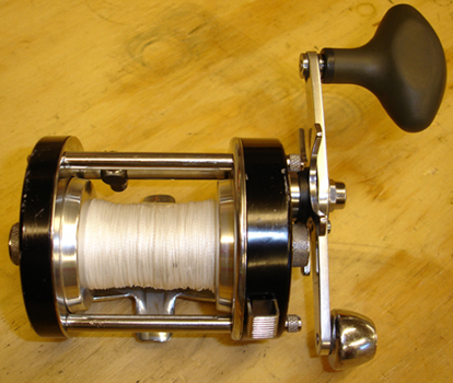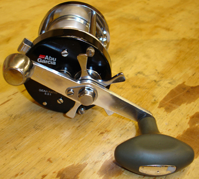 Will make a great big bait reel for somebody! Gear ratio is 5.3 and brings in about 31 inches per crank. Also has new Abu handle.