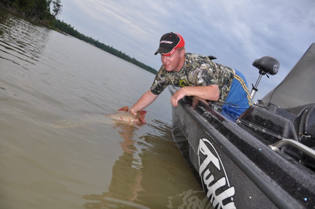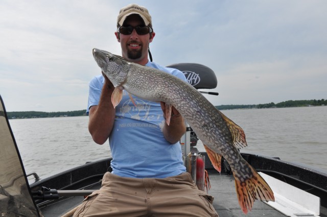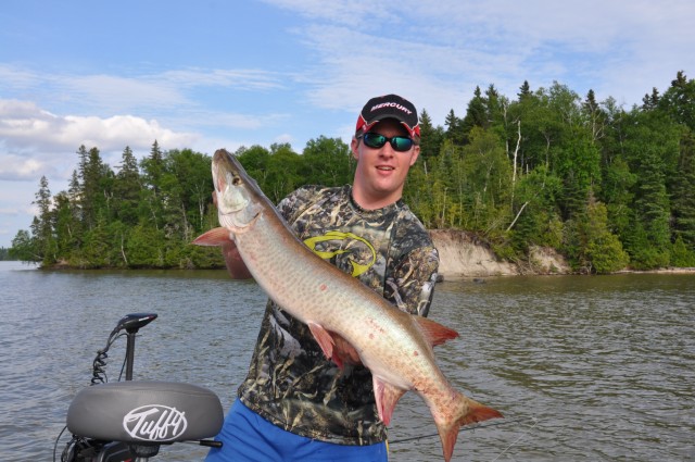 Pulled into Dryden this afternoon for a few days of fishing on Wabigoon and was pleasantly surprised as to just how hot the fishing is right now. We hit four spots and every spot/area we went we either caught or lost fish. I was fortunate tonight to boat two, a 42 on a db 10 and a 47.75 on a Topraider. Numerous Pike were boated with 36.5 being the biggest, and averaging 34 inches. Stay tuned for more reports and video to follow!