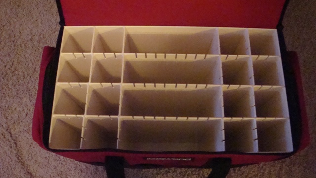 Lakewood will hold up to 80 baits and has three large zippered storage pockets on each end. It also has tool storage pockets along the front. The plastic storage containers are not included.