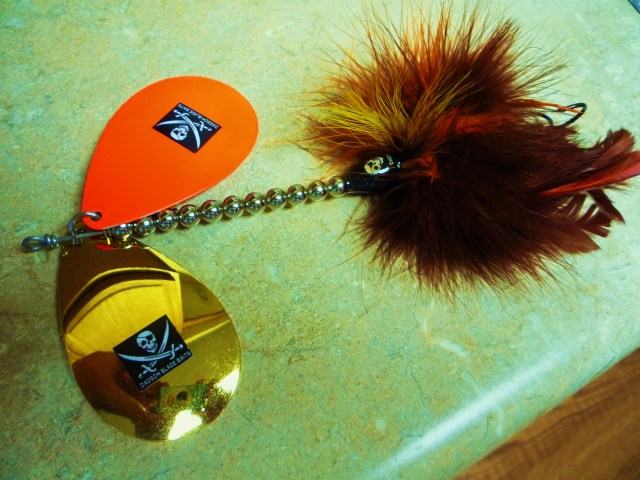 Bought this lure brand new. Only thrown it once. Bait is in otherwise perfect condition. Dual #12 Colorado Blades + custom hackle feathers with a hint of marabou. Every Boo Dadley bait is handmade and no two are completely alike in any way.