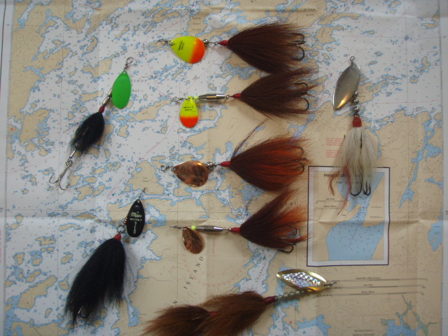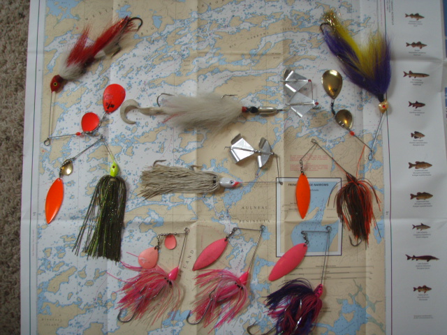 Blades- Spinnerbaits and bucktails. Some are new. Harrassers are old. Huntertails M/G's are old as well and red one has been trimmed by my daughter.LOL. $40 shipped-SOLD