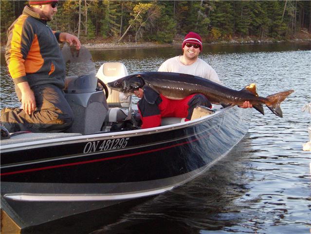 Posts: 247 Location: Uxbridge Ontario | The only large fish we had ever snagged was an 80-90lbs sturgeon... Al least we think we snagged it as the lure was just behind the head. We where chucking 10" weighted Suicks over top of a sandy finger point with weedy patches last October and all of a sudden, bang. My buddy throws down a huge hookset. I have never seen a fish run like this one; We thought we were into the 55"+ muskie we saw earlier that day. 45 Minutes later... 75.5" Sturgeon Edited by HomeTime 8/6/2010 6:46 AM Attachments ---------------- GetAttachment00.jpg (62KB - 158 downloads) | ||