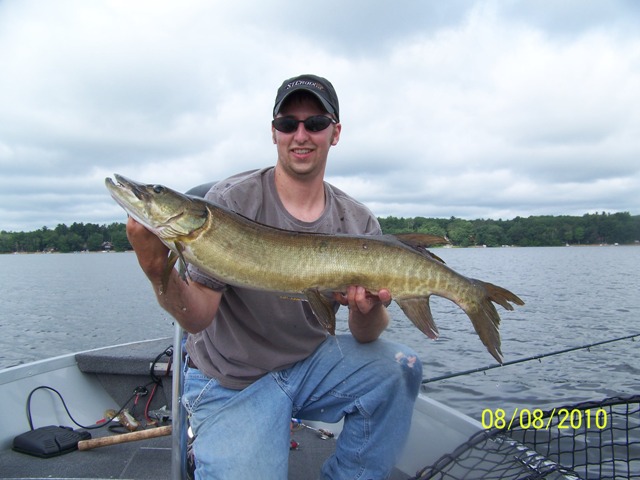I got one about 38" on a Pacemaker on Sunday during a panfish tourney with my 5 year old son. Didn't have the net with us as we were panfishing but thought to throw for a little while. After that my son started casting himself. He started out using the baitcaster for the first time and did pretty good. No birds nest and the cast started going a little father each time. Proud momment to see both the boys casting with them and liking it. The fish went airbourne 3-4 times during the fight and my son loved seeign that. He yells to me "where is the net" I told him we left it at home. He was all excited and worried about loosing it. We made a good safe boatside release with one 1 little cut across the finger from it. Good thing so far this year is I have been able to have a Muskie on with both of my sons this year while they have been out with me and seeing their excitement is worth it. He didn't want to reel this one in as I asked if he wanted to reel it in. Good luck to everyone fishing.