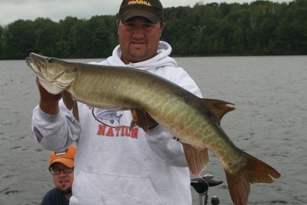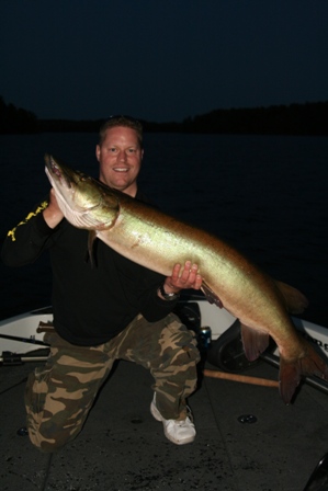 | Musky fishing has been picking up on the flowage lately, got a few fish this week. Had my client tuesday night get a nice 47 incher at dark on a cowgirl off of a main lake weed point. Earlier that evening we had a couple of fish up on main lake weeds, one on a cowgirl, and one on a River 2 Sea Kong.