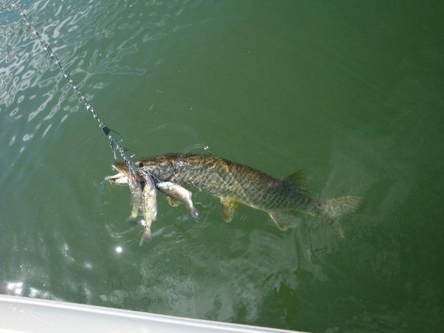Posts: 4053 Location: Land of the Musky | I think trolling with that many hooks on a stringer and with bass as baitfish is illegal. | ||
