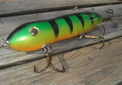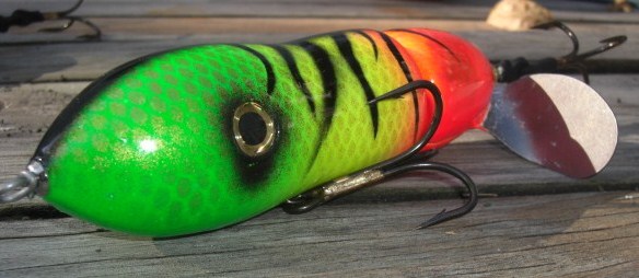 Posts: 223 Location: Victoria,MN | I'll try it again, The top pic is an original Big Mama, a wtd top water, 8" long and 3.5 oz. and bottom is a Super Twist'd Sist'r top water prop bait. She throws alot of water and can be retrieved super slow or fast Edited by T-Bone 9/30/2010 5:01 PM Attachments ---------------- 029.JPG (94KB - 143 downloads) 026.JPG (85KB - 142 downloads) | ||