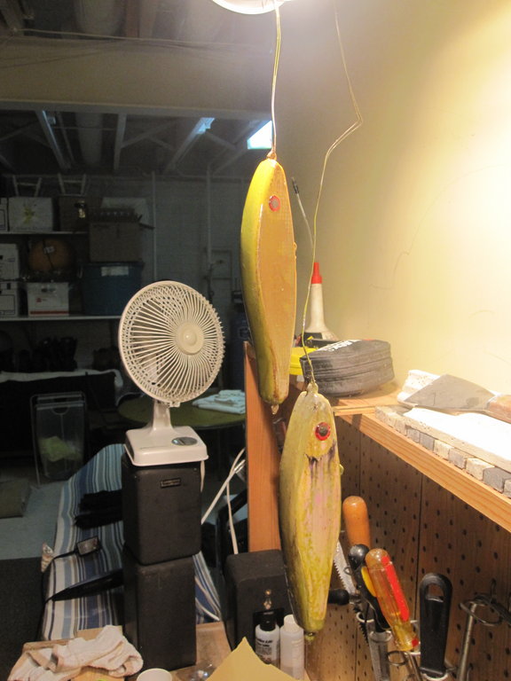 Posts: 62 | thanks wolf! no not using a drying wheel. the last two pics of baits were rattle can finish and were the first i made. the glider with the tail and suick were after i got the air brush. i think the drying wheel is next on my things to build. wolf do you have any plans on how to make a drying wheel? i am hoping to make a bunch of baits over winter break when i have time and can actually get some time in the shop without having to work on my industrial design projects. | ||